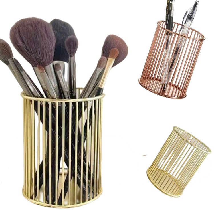 Measuring 3.15 x 4 inches, it doesn't take up much space and fits on your desk, shelf, countertop, etc. This gold metal pen holder is made of a high quality metal material that is strong enough, smooth and well polished, not prone to cracking or corrosion, and easy to clean, so you can rest assured that you can use it for a long time. Perfect for home and office use, this one can store not only notes, but also accessories such as pens, scissors, cards, makeup brushes and more to keep your desktop organized.