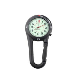 This multi-functional climbing carabiner watch features a fluorescent dial for clear visibility in low-light conditions. Measuring 1.50 inches in width, 2.95 inches in height, and 0.39 inches in thickness, it can be easily attached to the exterior of a climbing backpack for quick time checks without adding significant weight or hindering movement. The watch includes a safety clip for secure attachment, with a wear-resistant, waterproof sealed design to withstand impacts, scratches, and rain. Inquiries are welcome for more details.